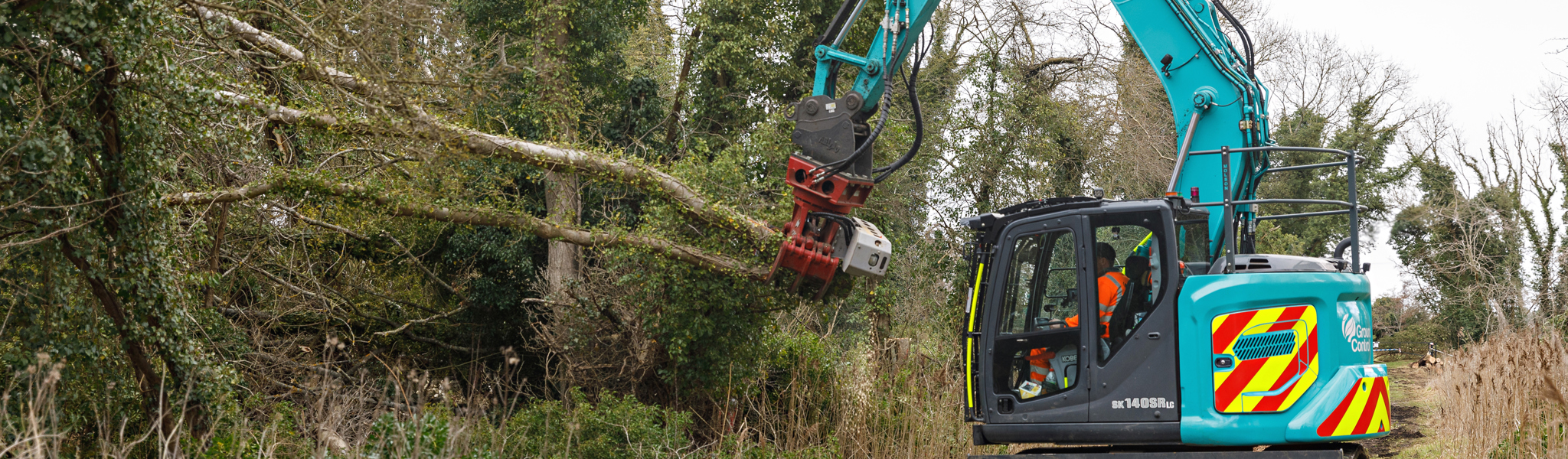 The Kobelco SK270SRLC is the flagship machine in our fleet designed specifically for arboriculture. With a robust base kit weighing 27 tonnes and enhanced stability through additional counterbalance, the Kobelco empowers you to handle even the largest trees at extended reaches. Its exceptional low ground pressure, combined with sensitive rubber pads, ensures minimal impact on vegetation and wildlife, guaranteeing the utmost care for delicate ecosystems. Equipped with bio-oils, the Kobelco enables operation near water bodies without compromising the environment's integrity.